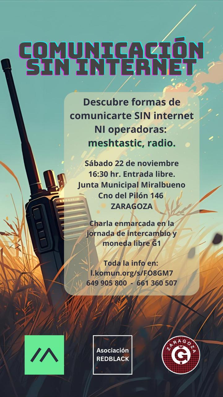 - Charla interactiva “Comunicación sin internet. Descubre formas de comunicarte sin internet ni operadoras: meshtastic, radio.”